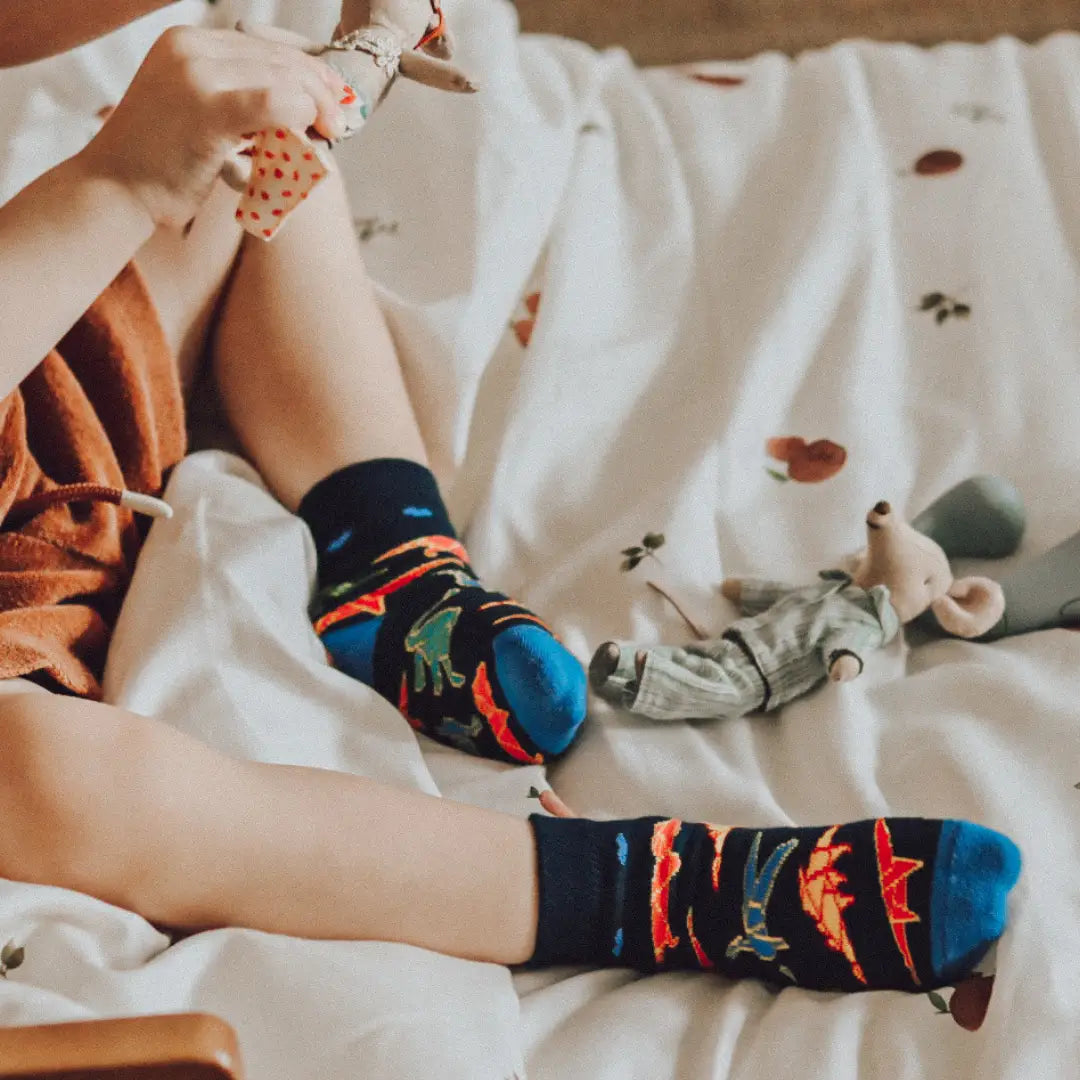 De Family Box – Dino “Roar” brengt plezier en matching moments samen! Trek samen met je vrienden of familie dezelfde dino-sokken aan en laat je dag beginnen met een glimlach.
